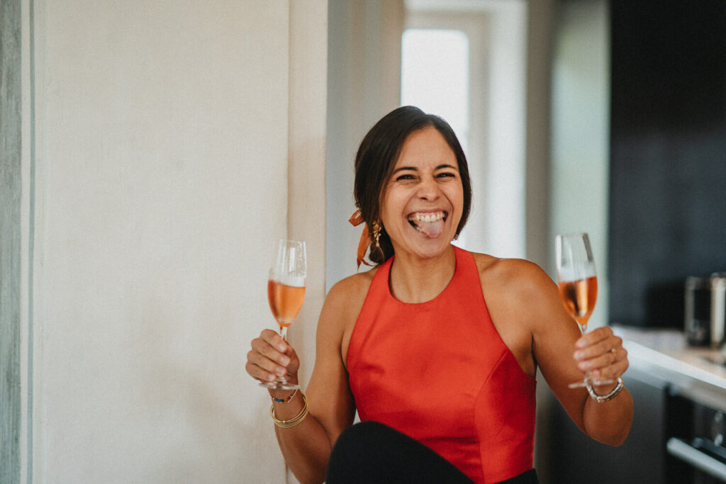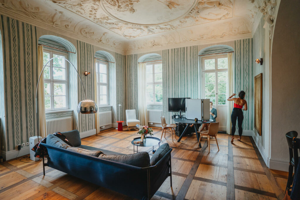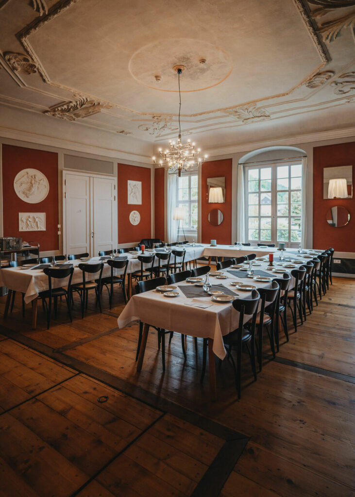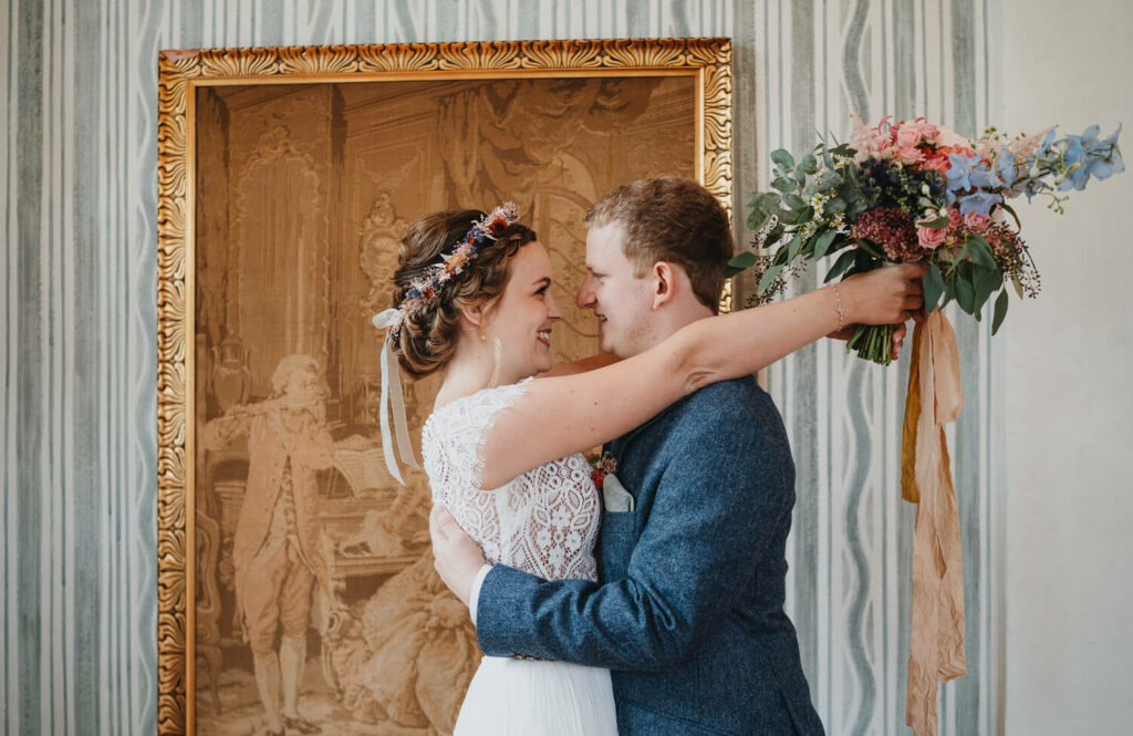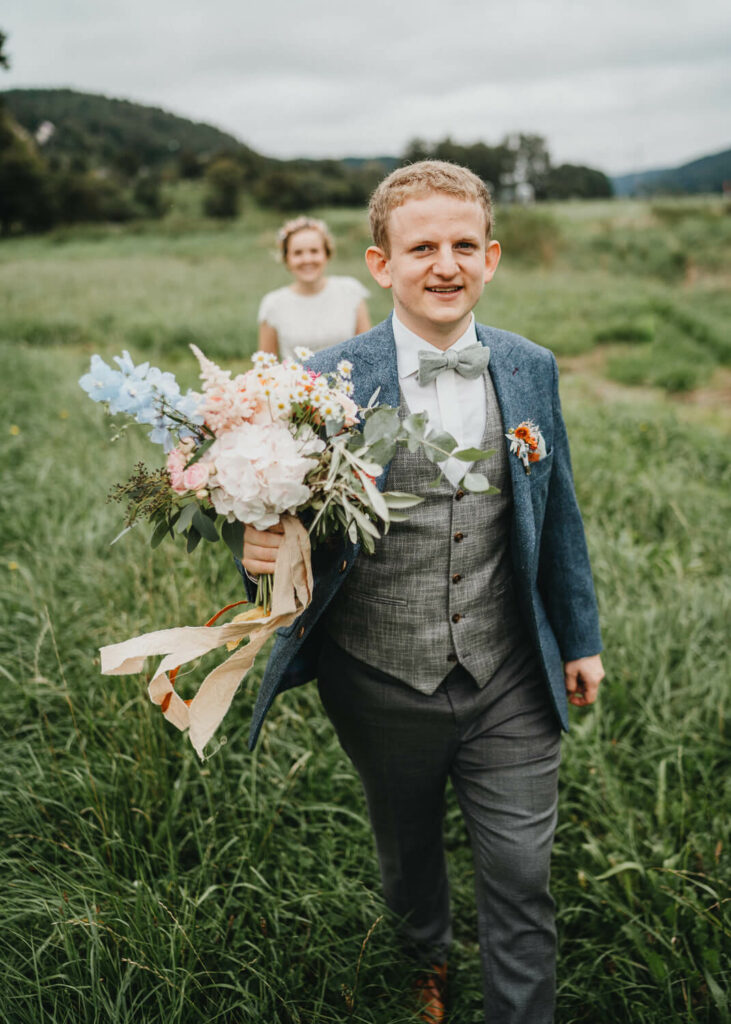 Die beiden haben die Trauung auf Nachmittag gelegt, was so viele Vorteile hat. Die Gäste können ganz in Ruhe anreisen, das Brautpaar hat morgens entspannt Zeit und der Tag ist nicht zu lang. – So bleibt mehr Energie für die Party am Abend und da haben die beiden denke nicht zu viel versprochen.