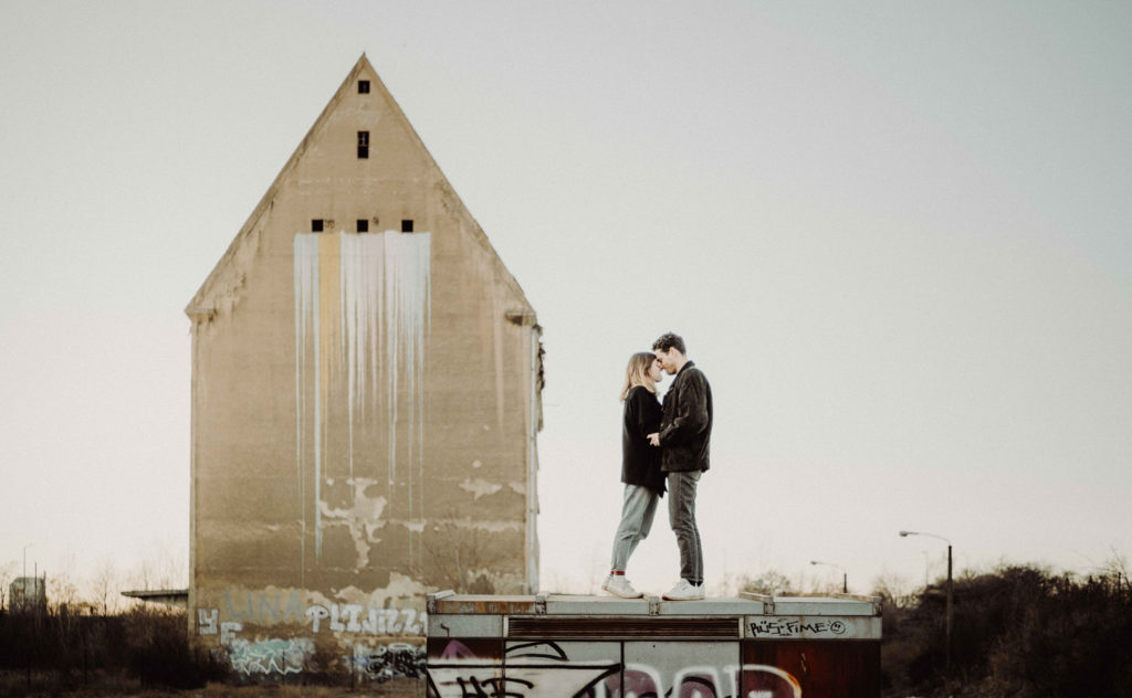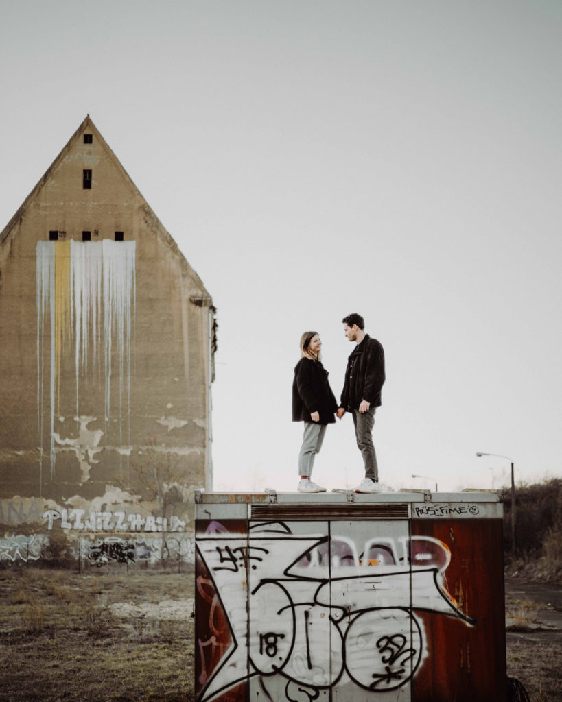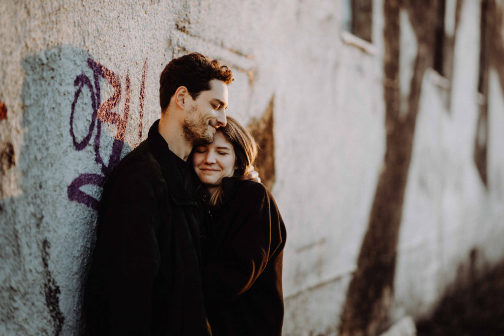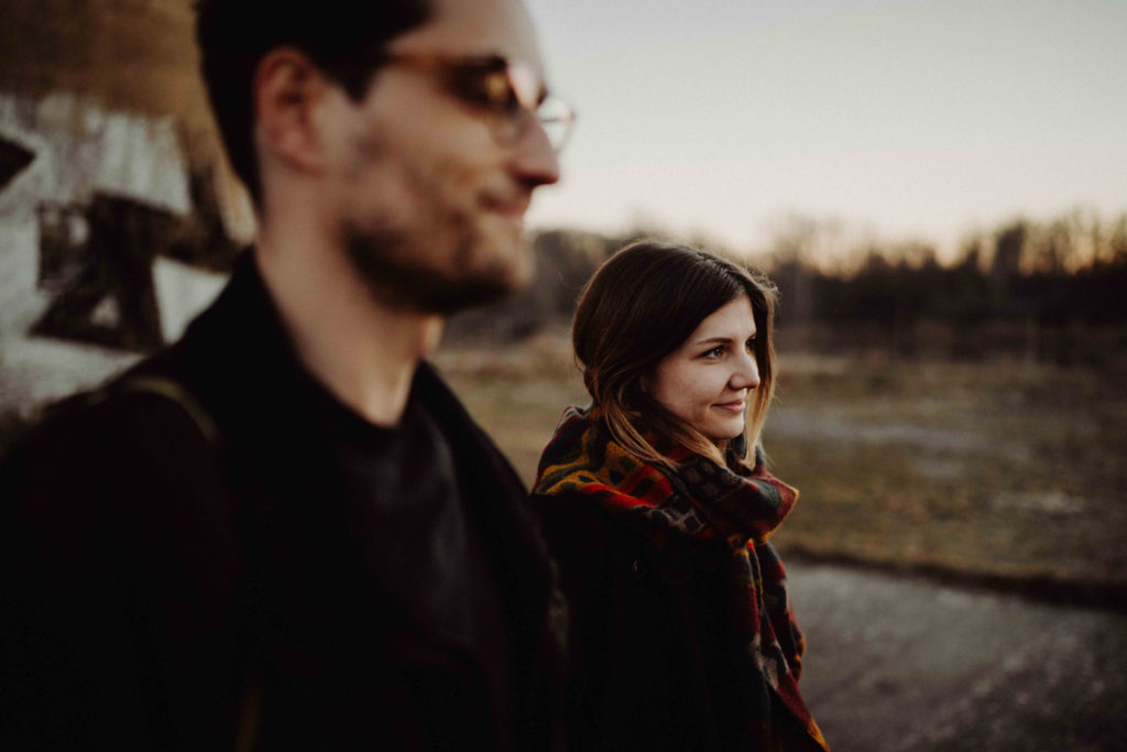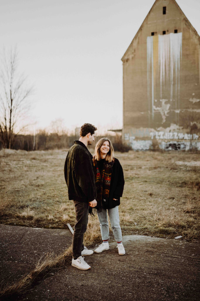 So viel Liebe in den Augen zweier Personen sieht man selten. Es war schön, diese Lockerheit und diese super entspannte Atmosphäre vor der Kamera erfahren zu dürfen. Für Juli & Marvin war es gleichzeitig das erste richtige Shooting. Als Location für den Sonnenuntergang hatten wir uns den Lindenauer Hafen und seine alten Speicher auserkoren. Diese wurden im Übrigen nie genutzt, da der Hafen nie eine richtige Andienung an umgebende Gewässer erhalten hat.