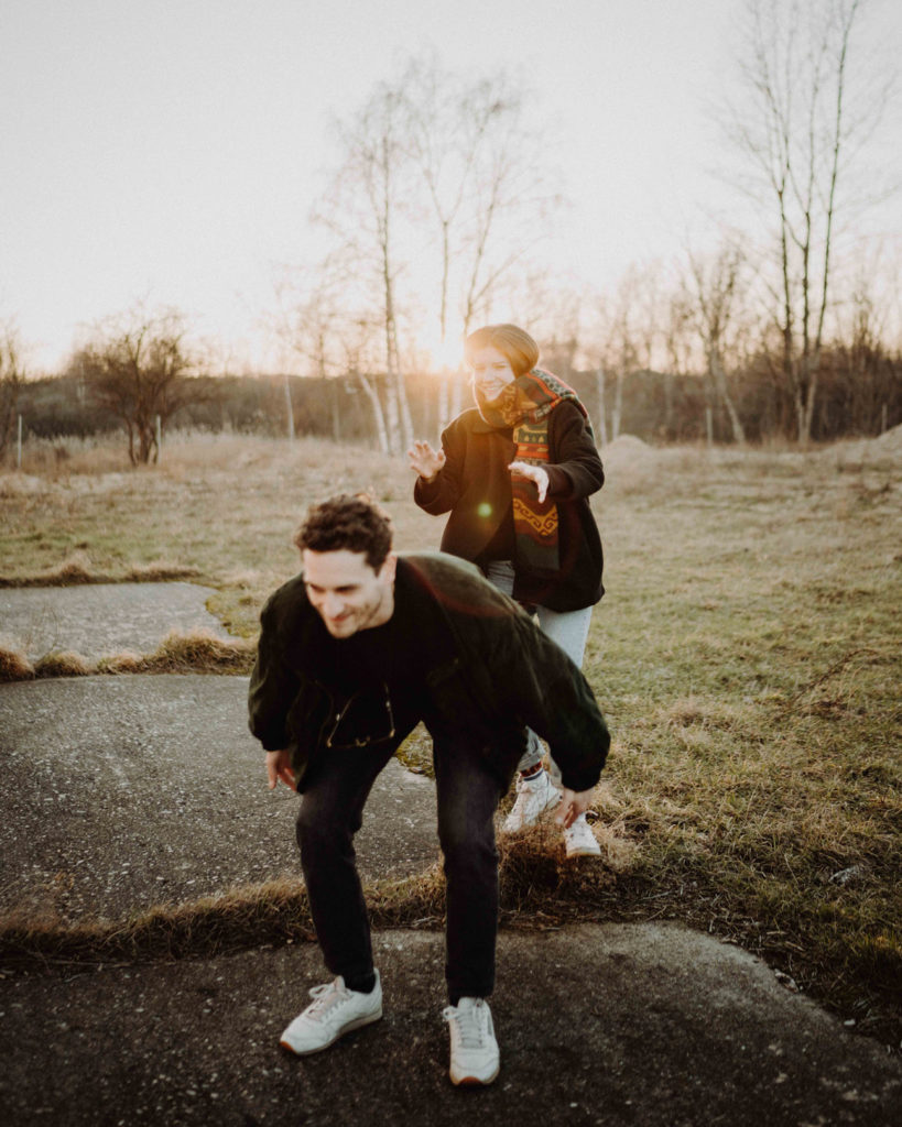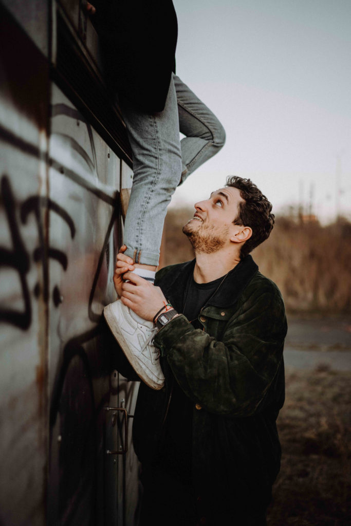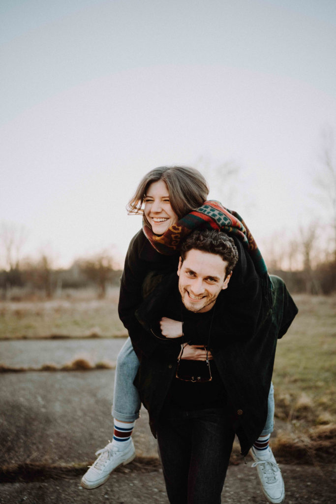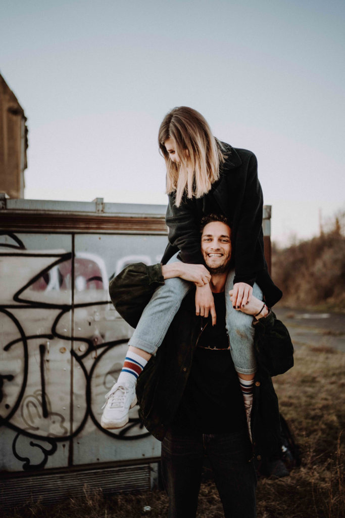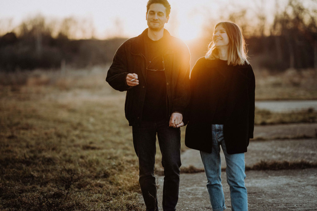 So viel Liebe in den Augen zweier Personen sieht man selten. Es war schön, diese Lockerheit und diese super entspannte Atmosphäre vor der Kamera erfahren zu dürfen. Für Juli & Marvin war es gleichzeitig das erste richtige Shooting. Als Location für den Sonnenuntergang hatten wir uns den Lindenauer Hafen und seine alten Speicher auserkoren. Diese wurden im Übrigen nie genutzt, da der Hafen nie eine richtige Andienung an umgebende Gewässer erhalten hat.