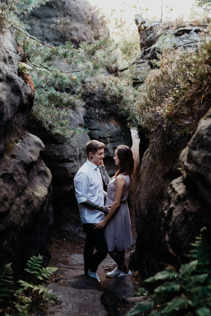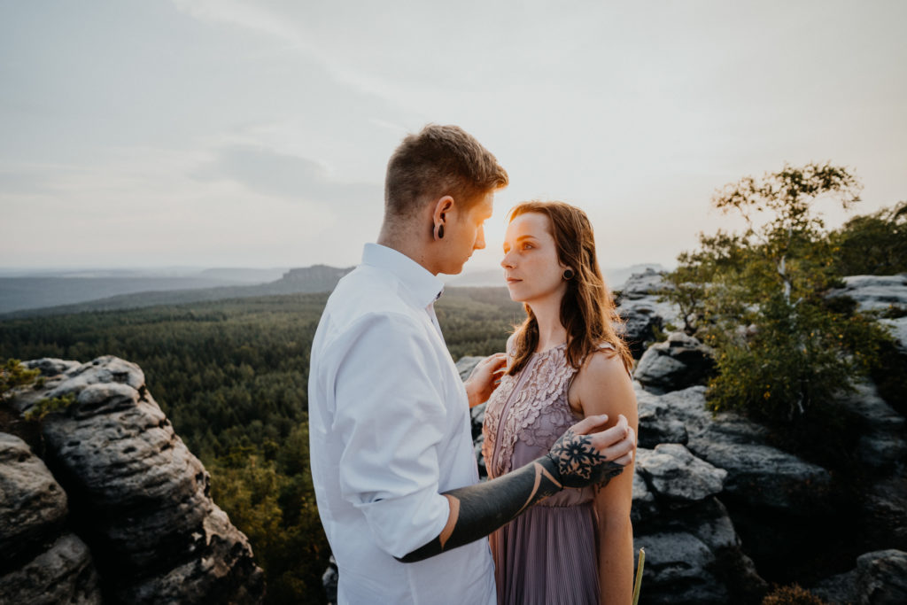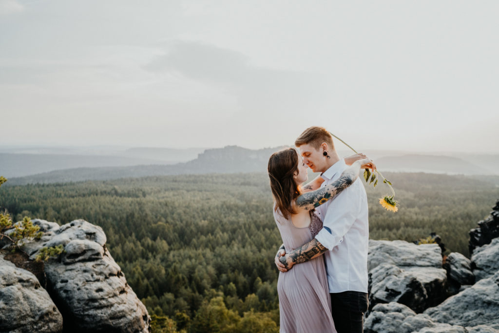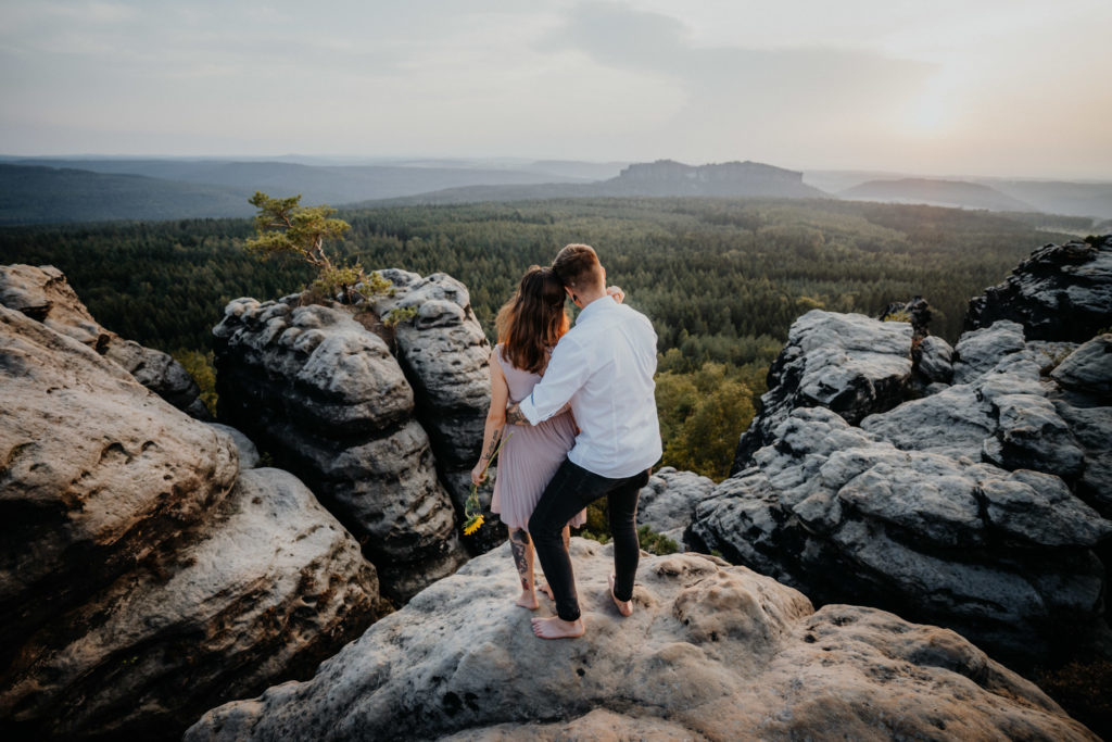 Sanfter Wind, angenehme sommerliche Temperaturen, ein paar klitzekleine Sonnenstrahlen und dann noch dieses Paar – besser geht es nicht! Ich liebe es mit Luciana & Thomas shooten zu können und zusammen durch die sächsische Schweiz zu ziehen. Die zwei sind so authentisch und so liebevoll, da geht alles von allein. Wie im Flug entstanden somit eine Menge an tollen Aufnahmen!